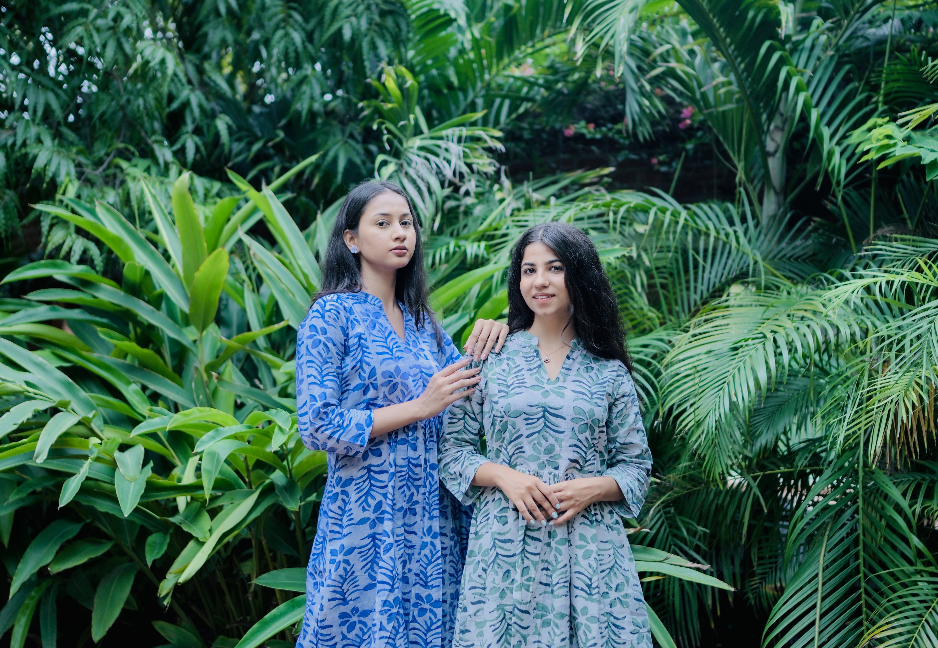 Blue Flamingo Hand Block-Printed Green Cotton A-line Kurta Set