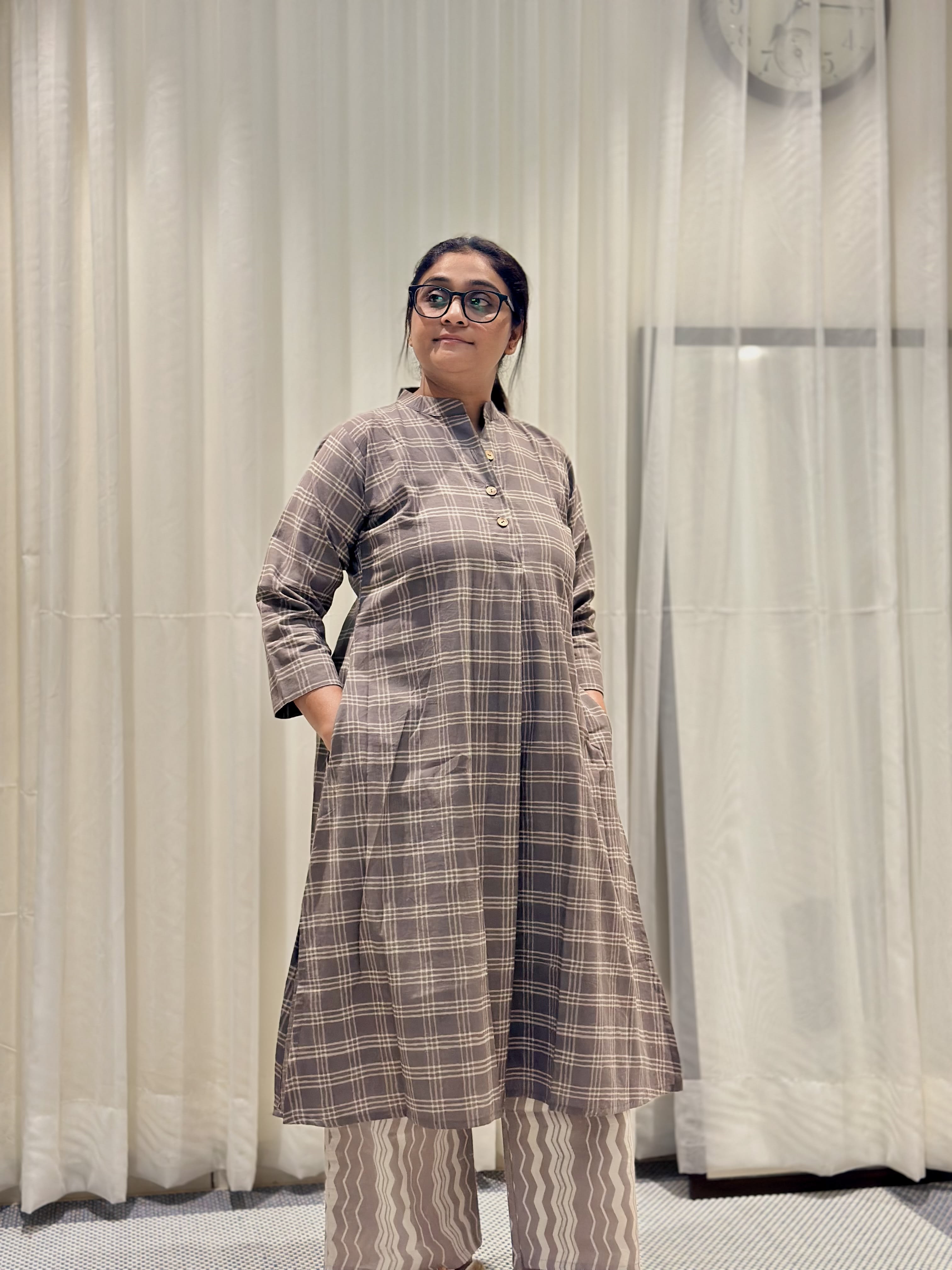 Beige Ajarak Block Print Kurta Plazo Co-Ord Set
